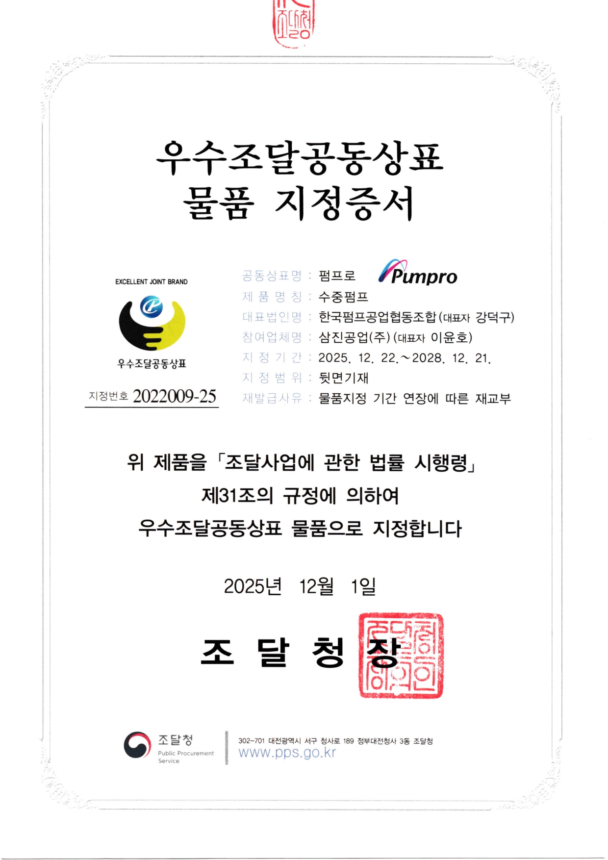 특허증수격작용 예방수단을 가진 수중모터펌프